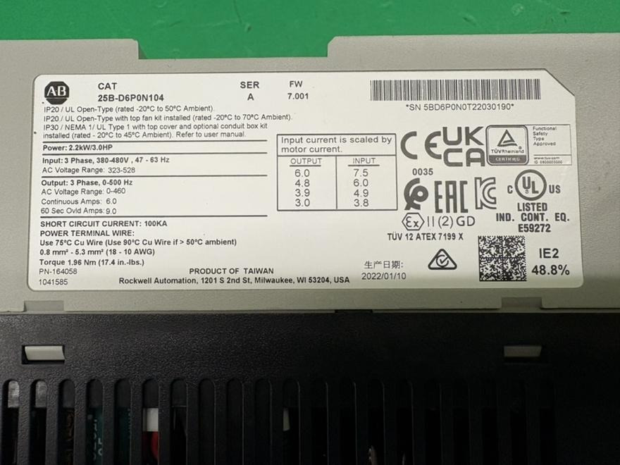 Allen Bradley 25B-D6P0N104 Powerflex 525 Drive