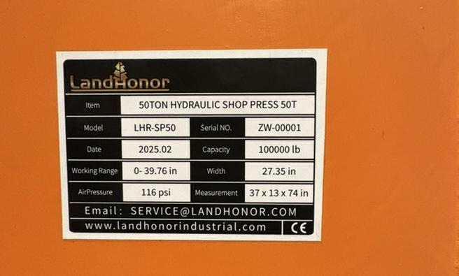 LandHonor 50 Ton Hydraulic Shop Press